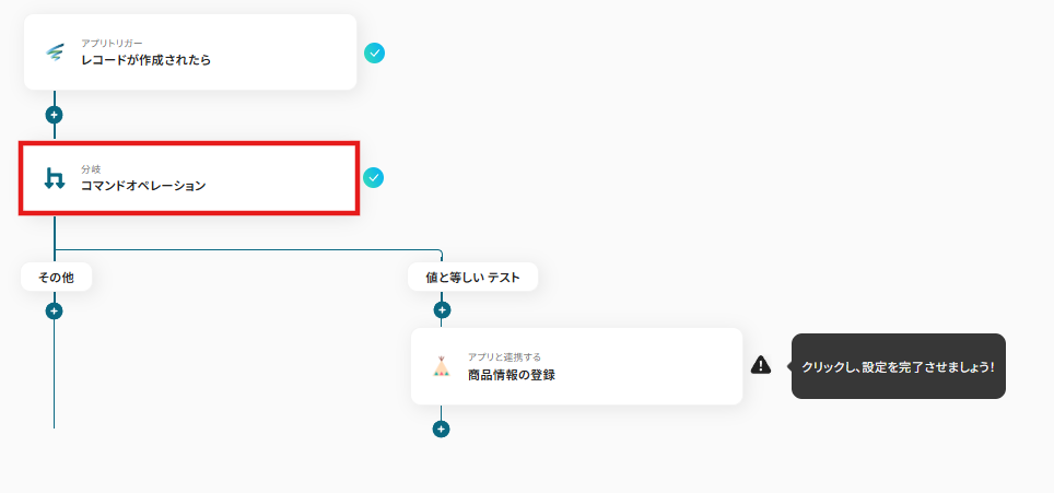 ※「分岐する」オペレーションは、ミニプラン以上でご利用いただけます。フリープランで利用するとエラーになってしまうのでご注意ください。