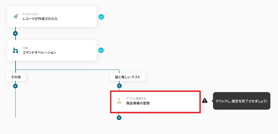取得したSPIRALのレコードが特定の条件の際に、BASEのフローへ進むようにするための設定を行います。