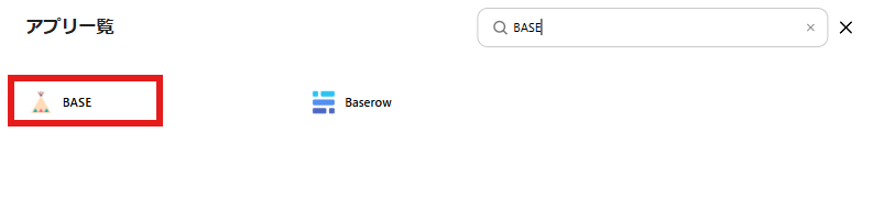 検索欄にBASEと入力し、表示された候補をクリックしましょう。