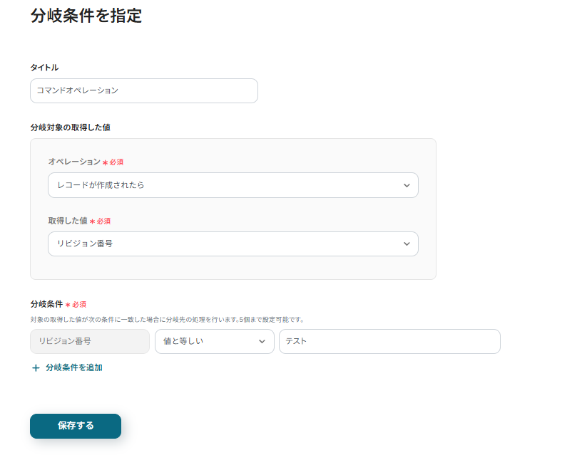 今回はリビジョン番号で行いましたが、「分岐対象の取得した値」から他の項目に変更することも可能です。