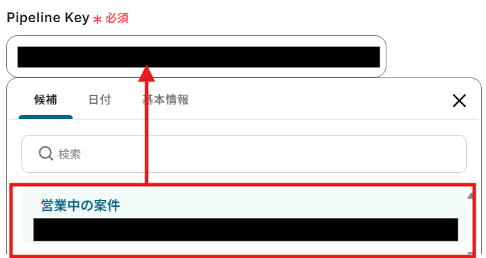 選択すると、Pipeline Keyが自動で反映されます。