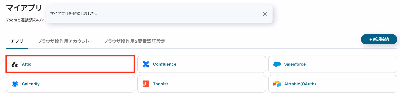 Attioのマイアプリ登録は完了となります。