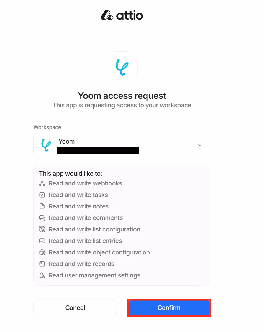 Yoomとの連携を求められるため、Confirmボタンをクリックしましょう。