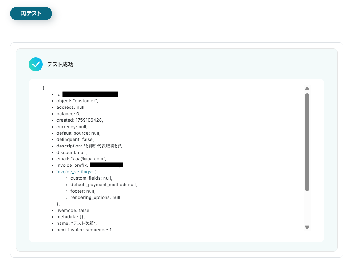 これで、Stripeから取得した情報をYoomで引用できるようになります。