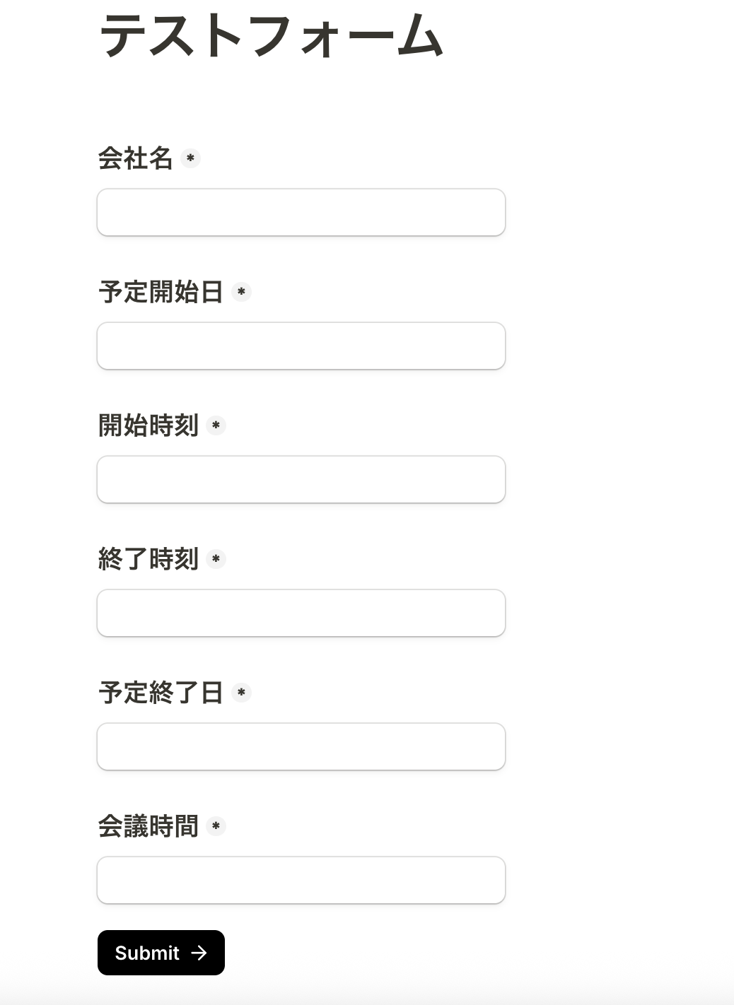 設定前に、連携したいTallyのフォームを用意しておきましょう。ここでは以下のフォームを使用します。