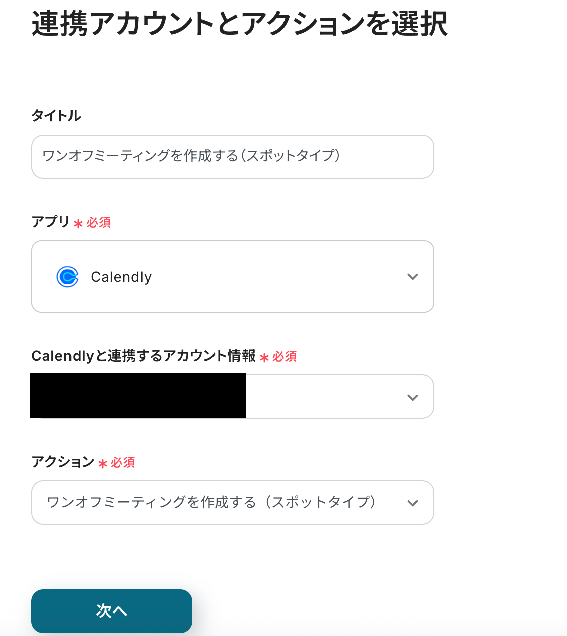 ステップ4:Calendlyのアクションを設定しよう(ワンオフミーティングを作成する(スポットタイプ))