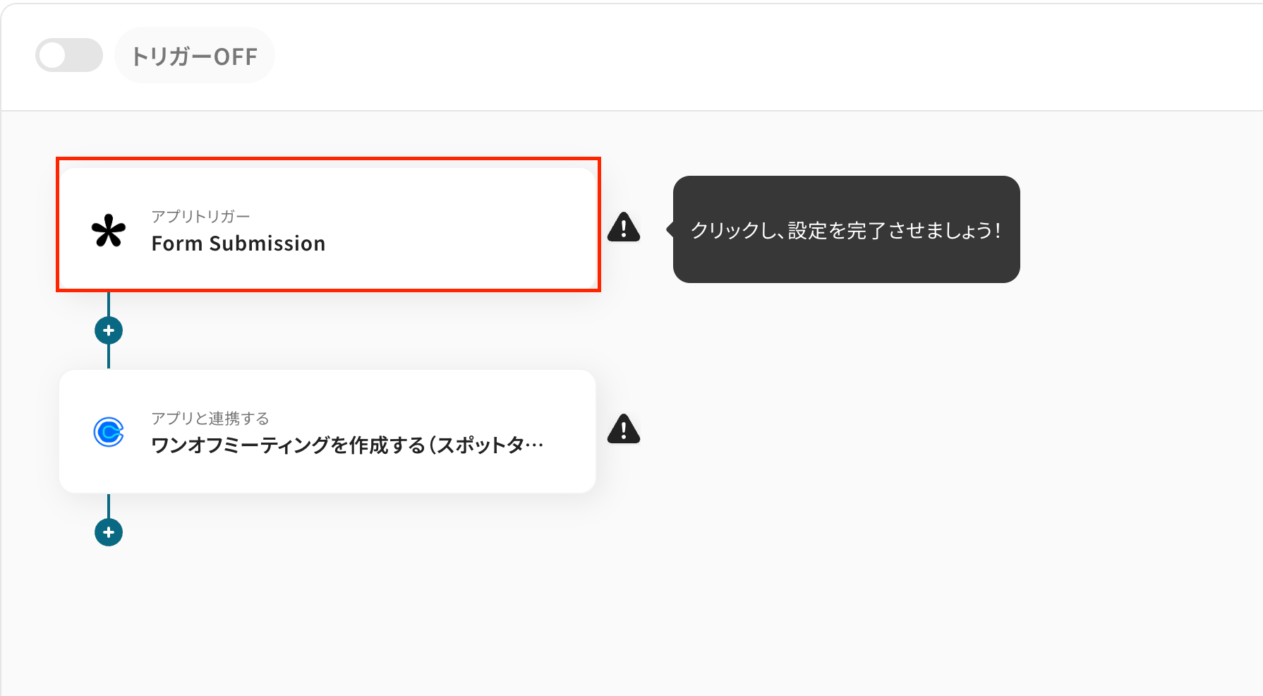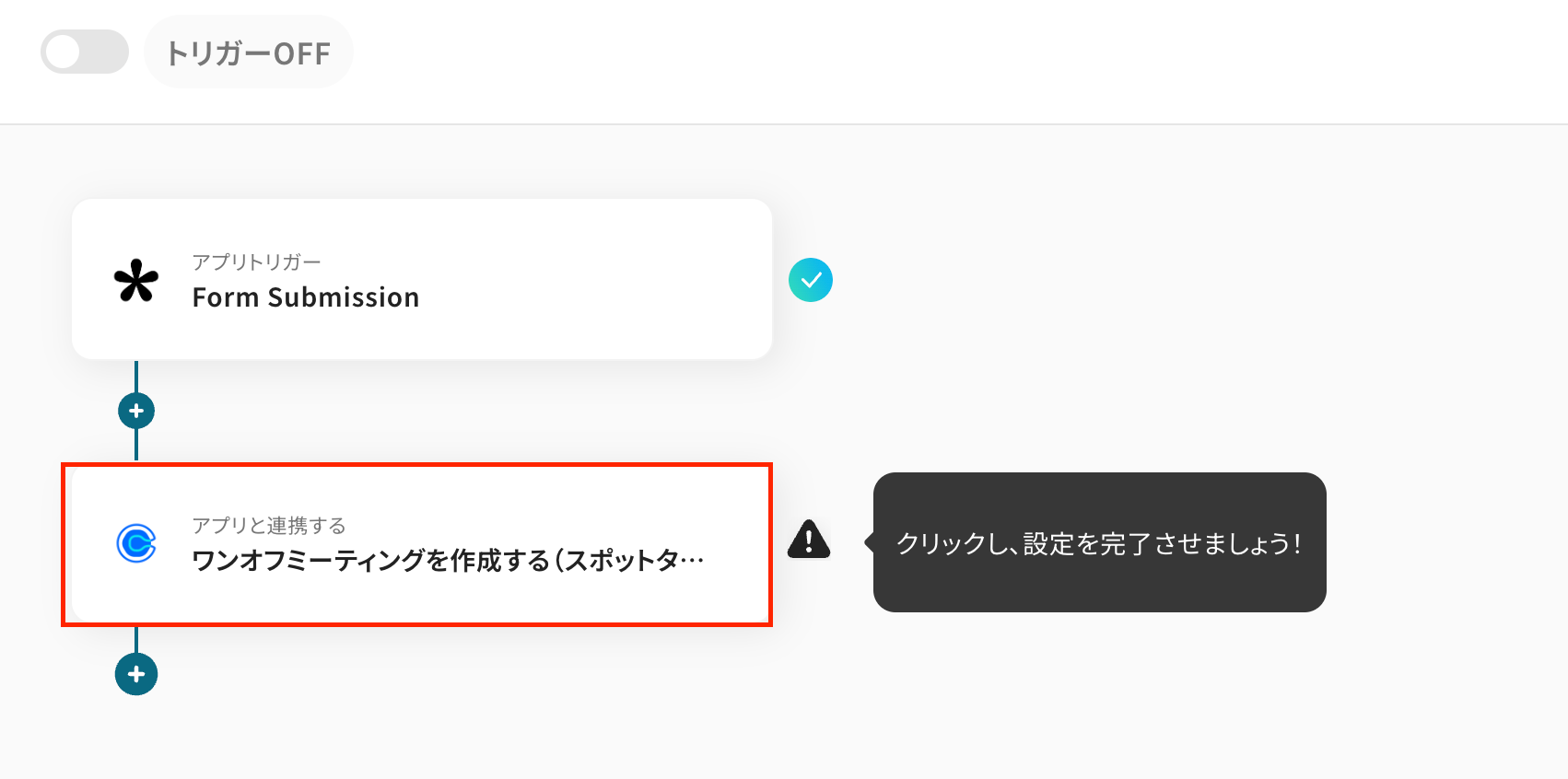 - アクションは「ワンオフミーティングを作成する(スポットタイプ)」が選択されています。