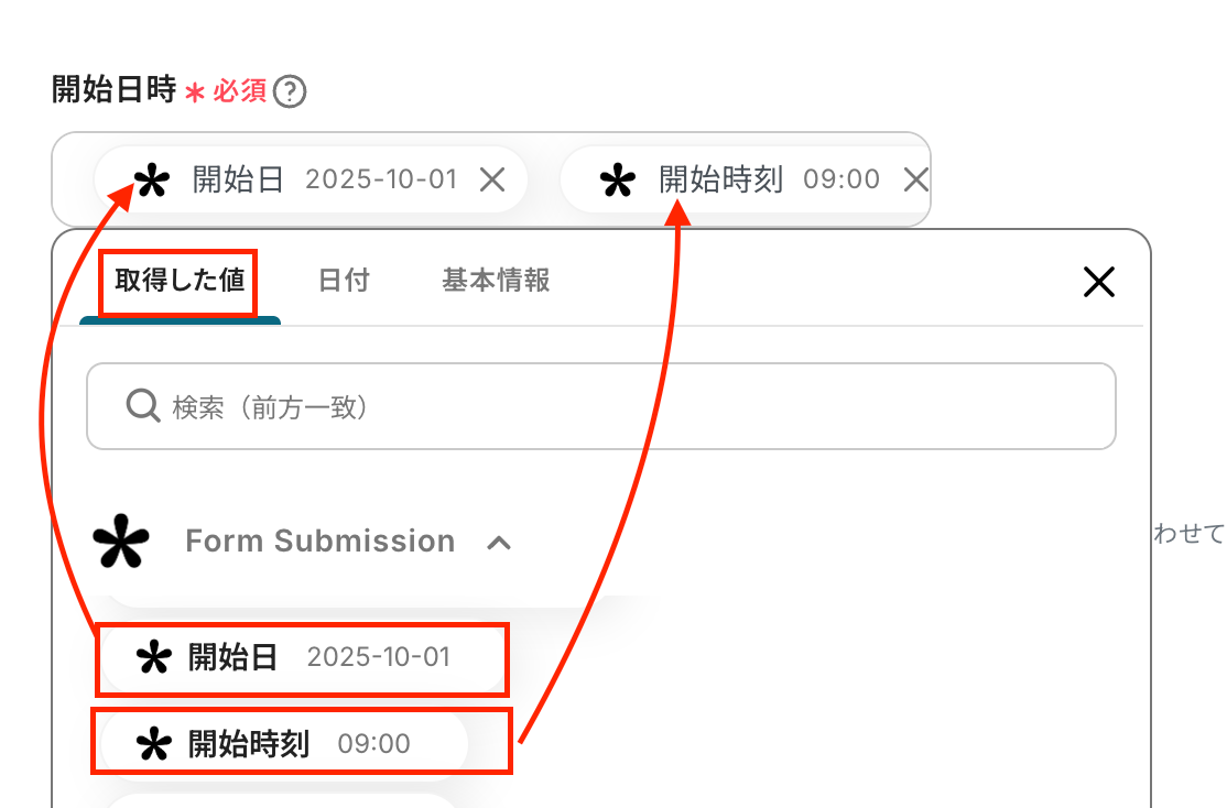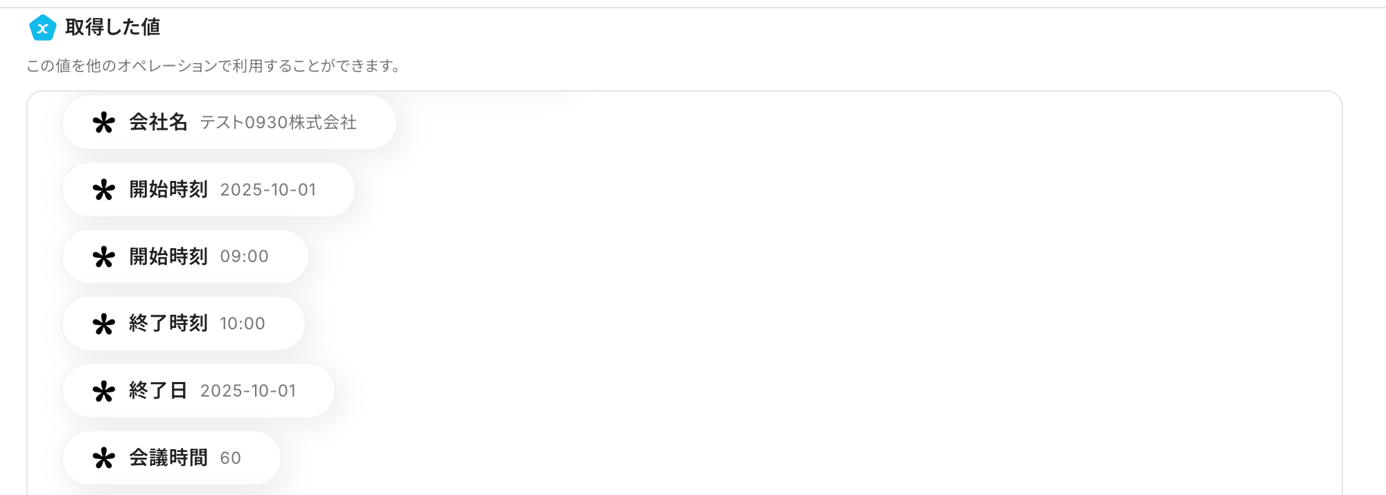 ここで取得した値は、後続のオペレーションで使用します。