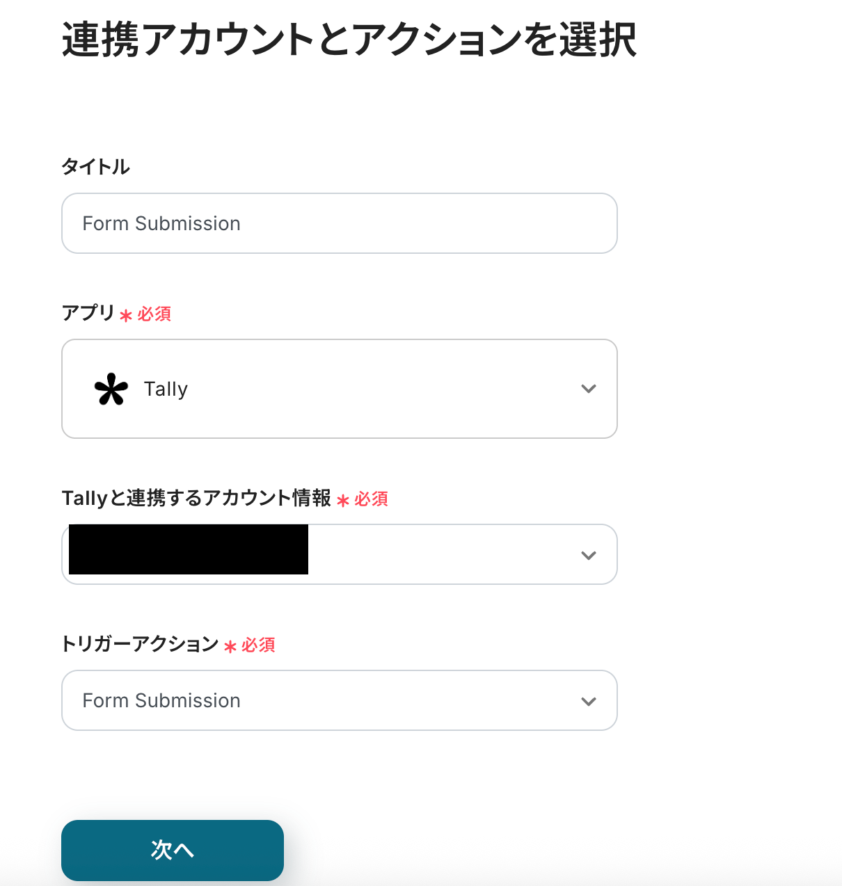 ステップ3:Tallyのトリガーを設定しよう(Form Submission)