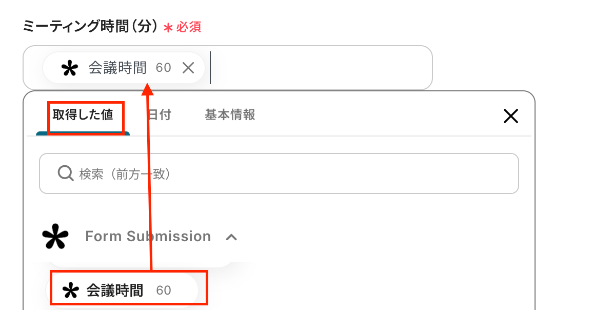 ミーティング時間(分)はここではTallyの取得した値から選択していますが、社外の方から届いた回答フォームの場合、相手に会議時間を回答してもらうことはあまりないと思います。