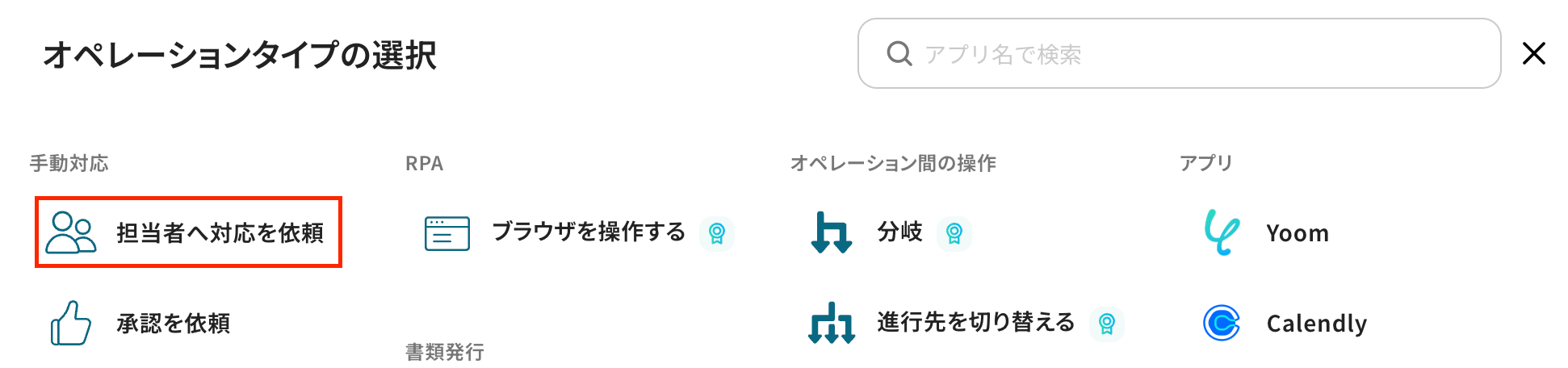 「担当者へ対応を依頼」を選択すると承認フローを挟むフローになります。