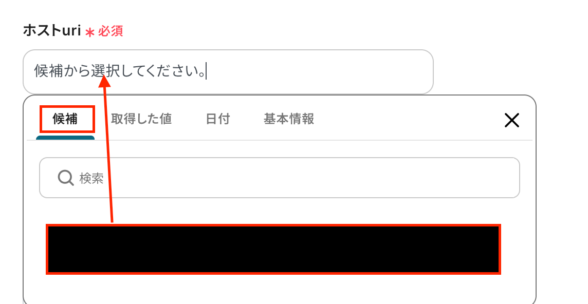 ホストuriも同様に候補から選択します。