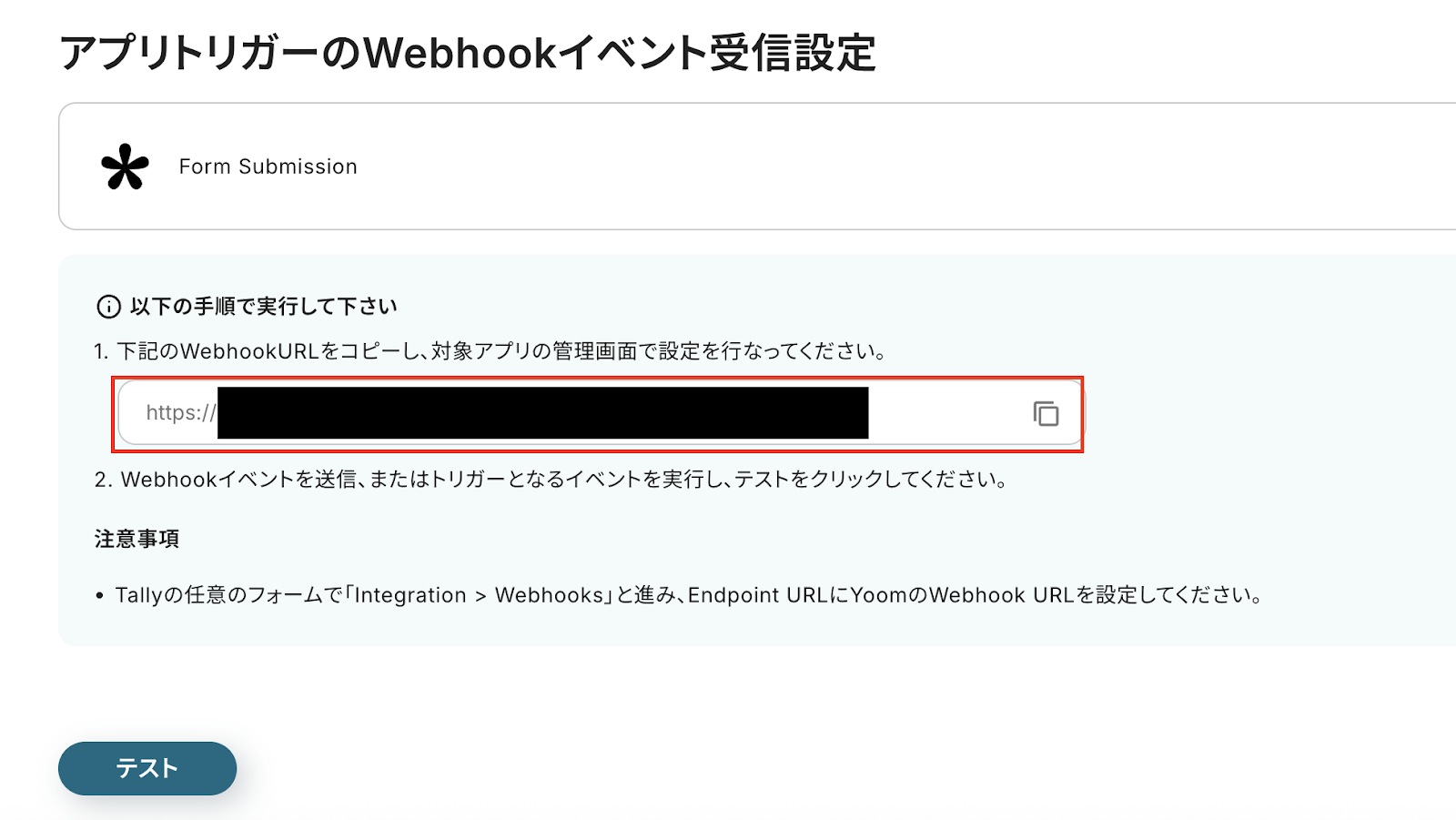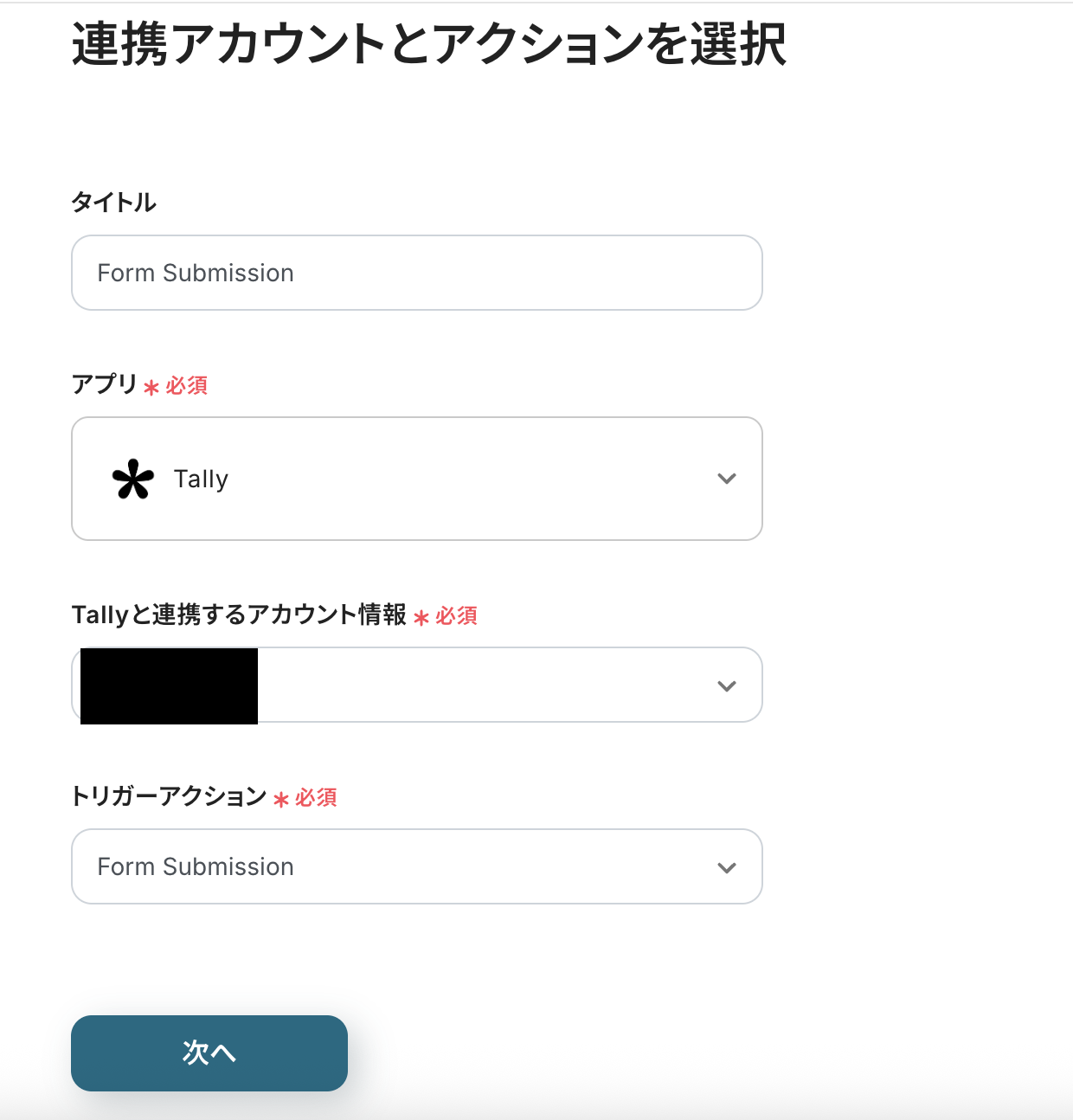 ステップ3:Tallyのトリガーを設定しよう(Form Submission)