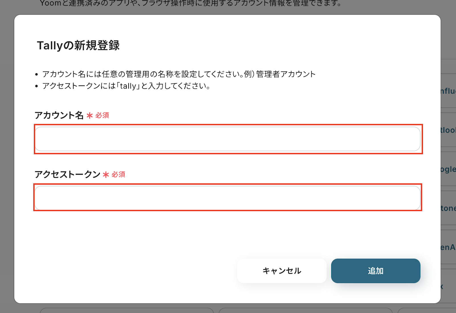 ・Tally、Microsoft ExcelのそれぞれとYoomを連携してください。