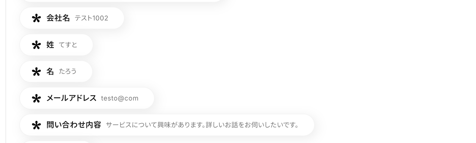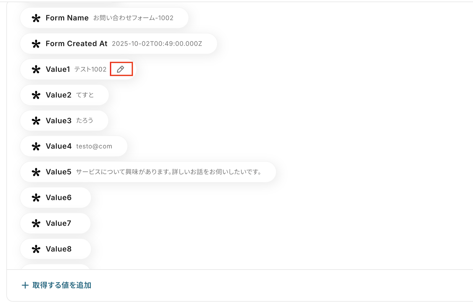 このままでも良いのですが、Tallyのフォームの回答された項目のタイトルがすべて「Value」となっていて、分かりにくいと思います。