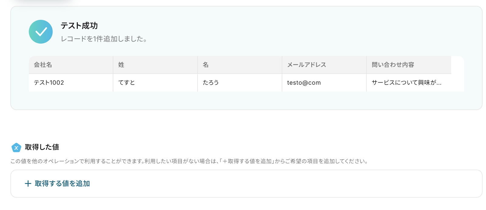 これにより、例えば採用エントリーの内容を応募者管理シートへ反映したり、顧客からの問い合わせをサポート用の一覧に追加したりと、現場での情報整理がスムーズになります。