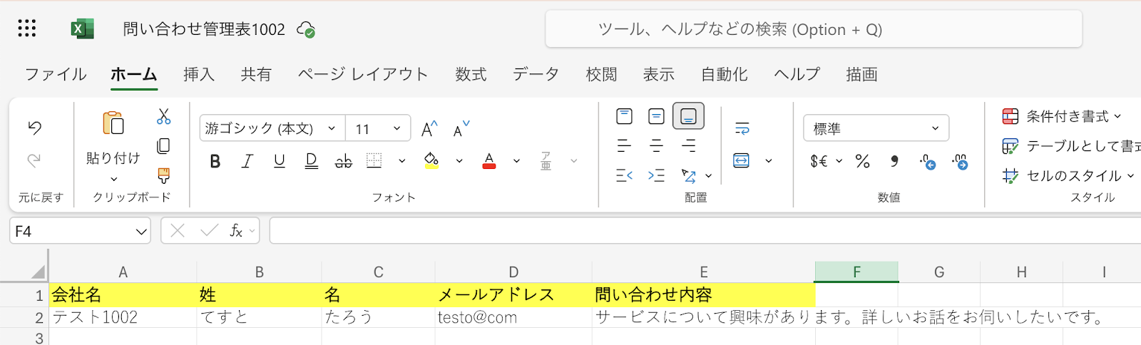 顧客からのフォーム入力データを活用し、Microsoft Excelで見積書を作成します。