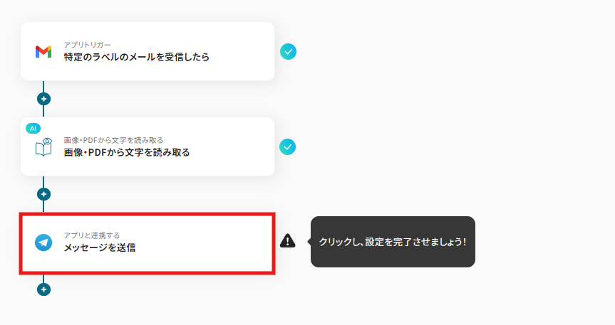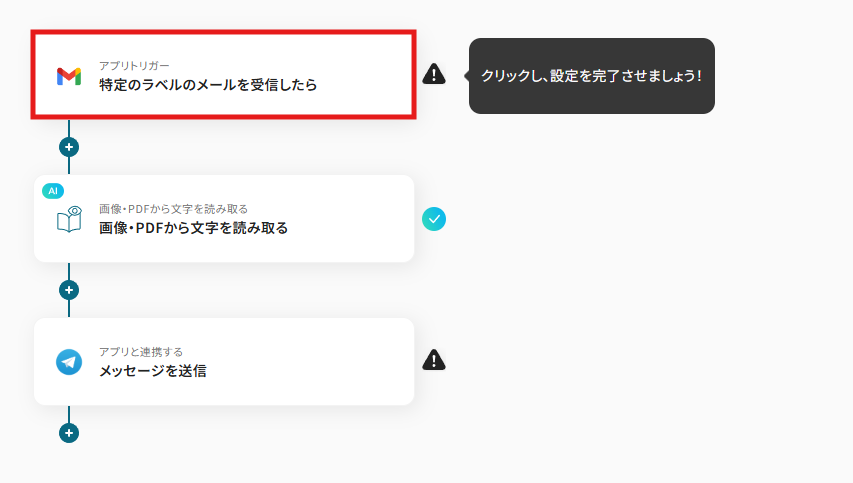 - トリガー(Gmail)とアクション(OCR、Telegram)の設定