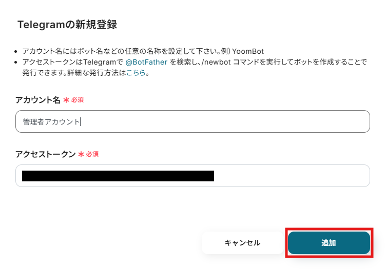 ・Telegram、DropboxのそれぞれとYoomを連携してください。