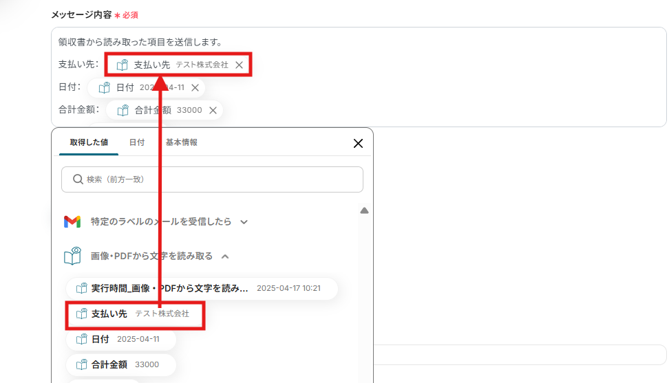 メールで領収書を受け取ることが多い場合に、内容確認や転記作業の手間を削減できる便利なフローです。