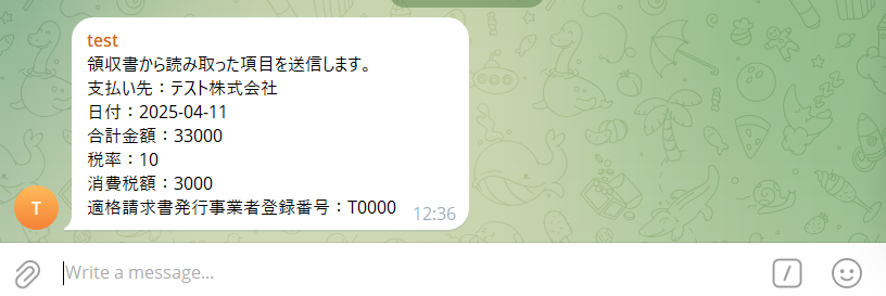 Googleフォームを通じて集められた領収書は、OCR機能を用いて自動的にデータ化されます。さらに、その情報がTelegramに送信されることで、チーム内での迅速な共有や承認プロセスがスムーズに行えます。