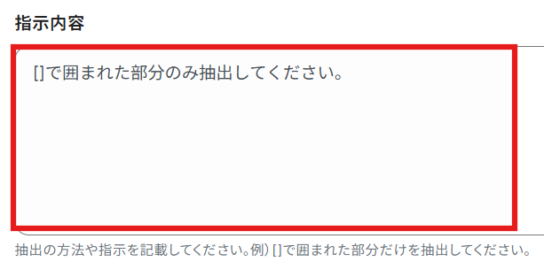 今回は、[]の中のテキストのみ抽出するように指示をしてみました。