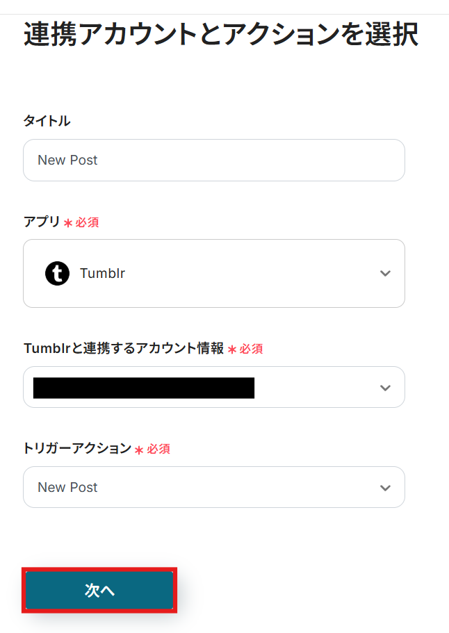 次に、Tumblrの投稿からデータを抽出するアクションの設定を進めていきましょう。