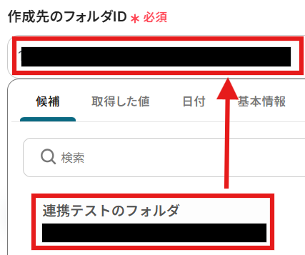 候補の中から選択するか、フォルダのURLを参照して直接入力でIDを指定することもできます。