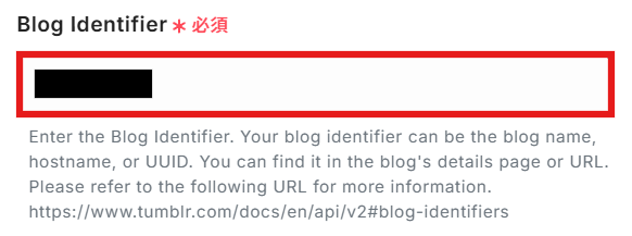 Blog Identifierの欄には、ブログ識別子を入力します。