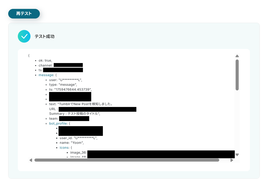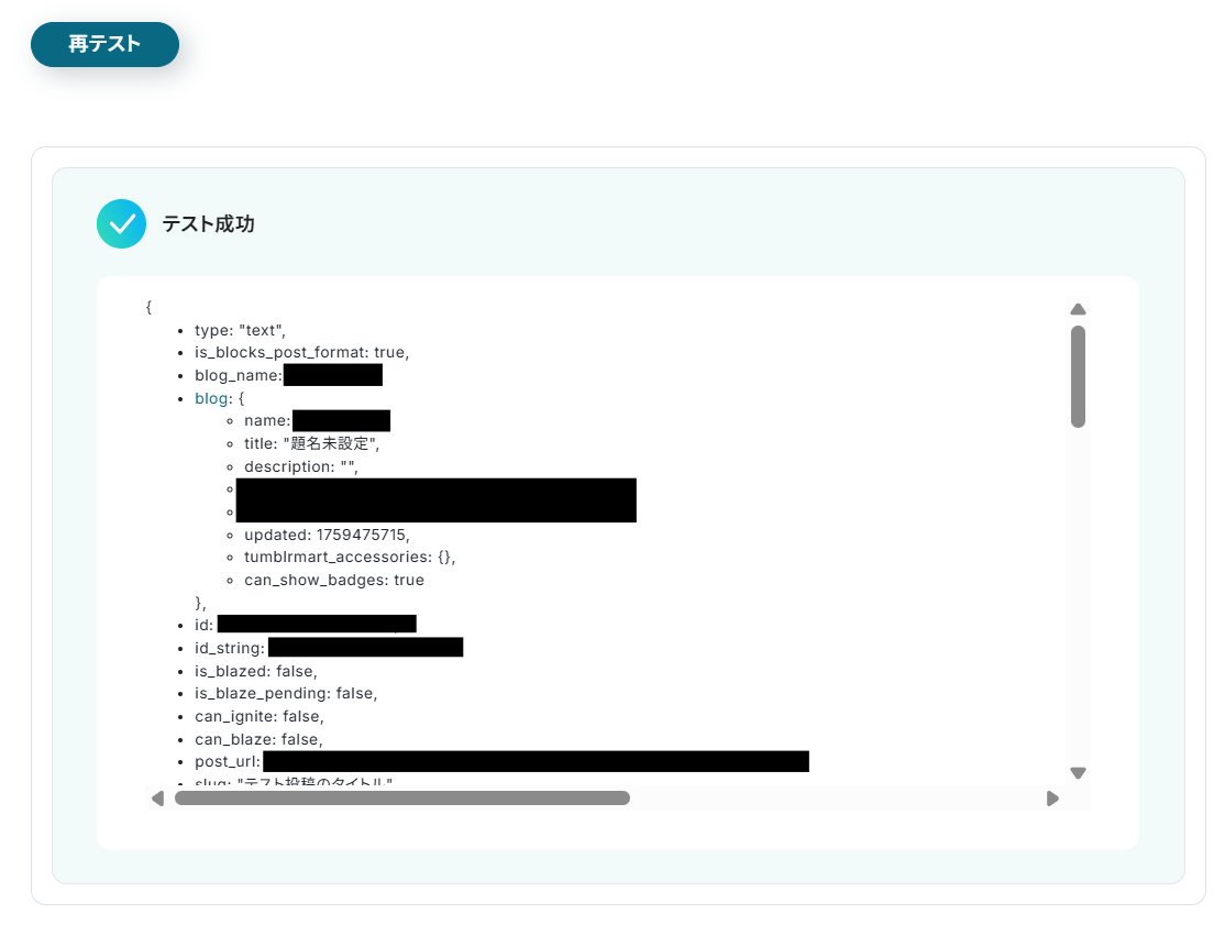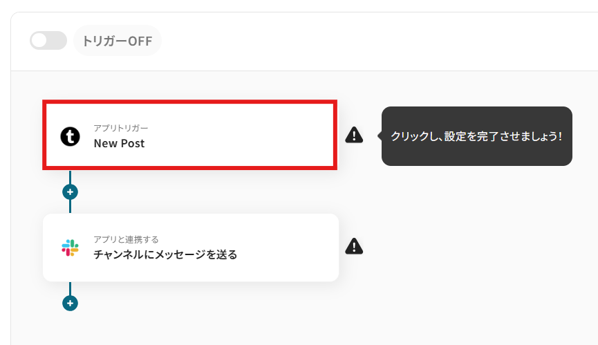 この自動化は、Tumblrの更新情報をトリガーとしてSlackへ直接データを連携するシンプルな構成です。