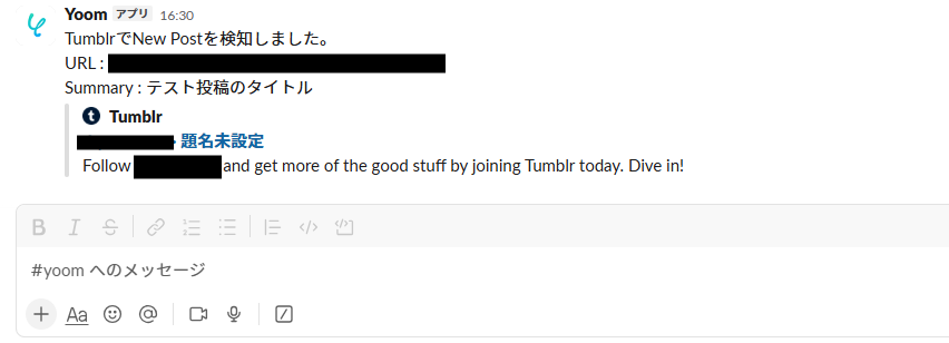 Tumblrの新しい投稿をチームに共有する際、手作業でSlackにURLをコピー&ペーストしていませんか?