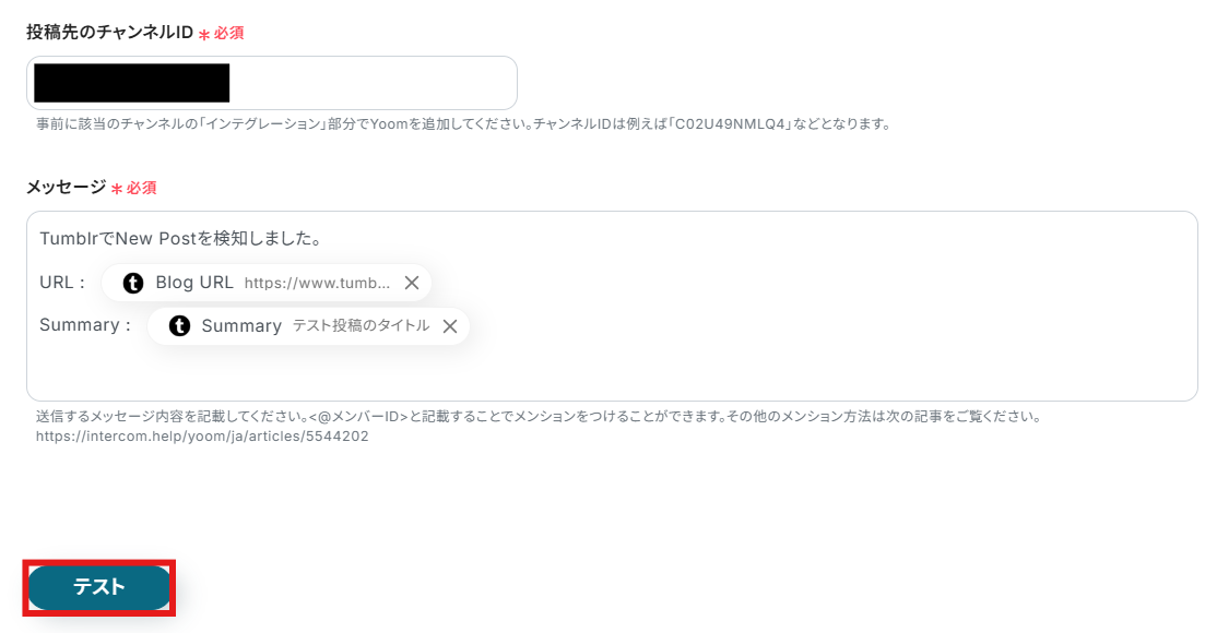 ・Tumblr、SlackのそれぞれとYoomを連携してください。