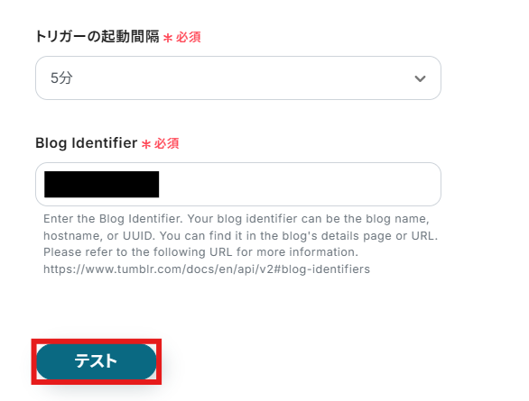 - Blog Identifier:Tumblrを参照しIDを入力してください。