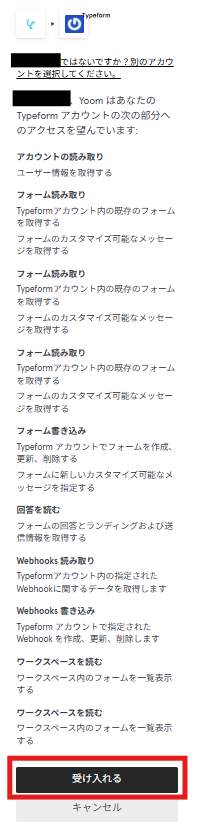 内容を確認して、「受け入れる」をクリックしてください。