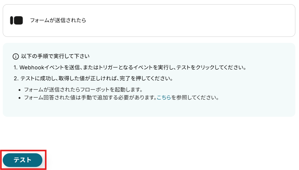 回答送信後、Yoomの操作画面に戻りテストを実行しましょう。