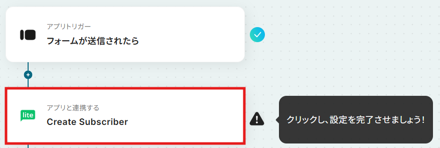 ここで、トリガーで取得したリード情報(氏名やメールアドレスなど)をマッピングし、Subscriberを作成するように設定します。