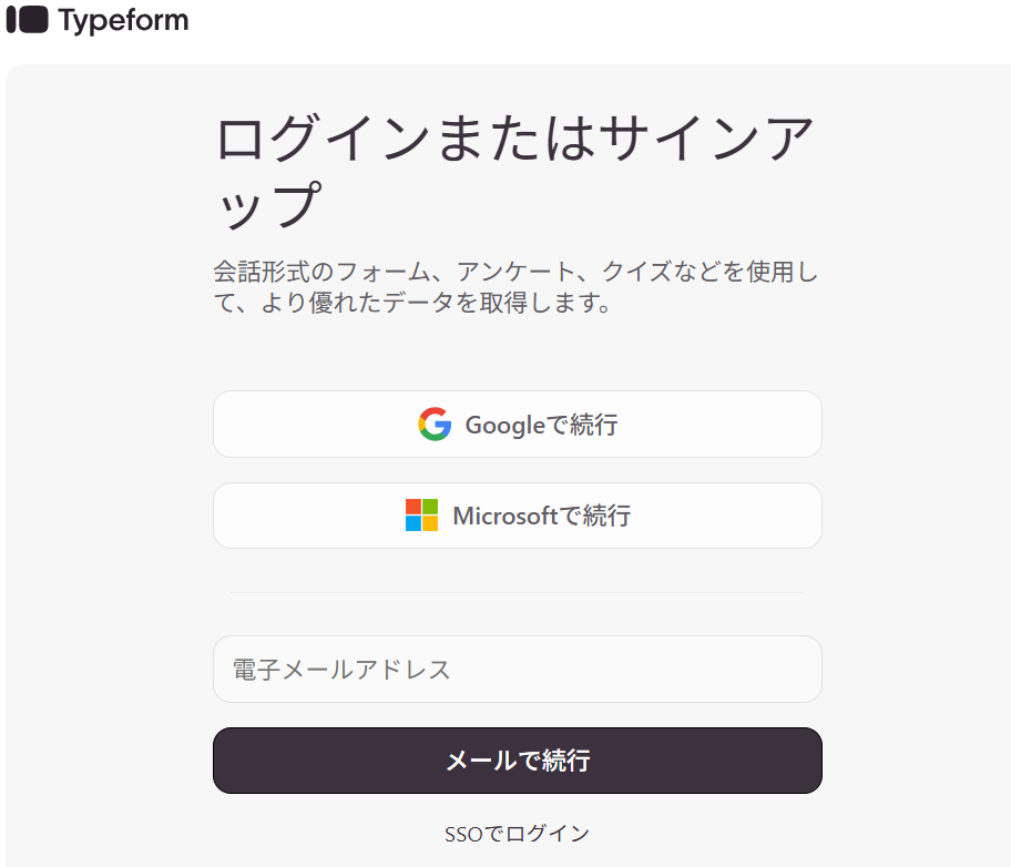 Yoomと連携したいTypeformのアカウントでログインしましょう。