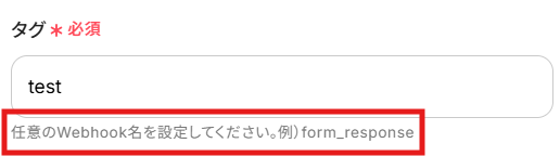 続いて、赤枠内の説明を参考に、任意のタグ(Webhook名)を入力してください。