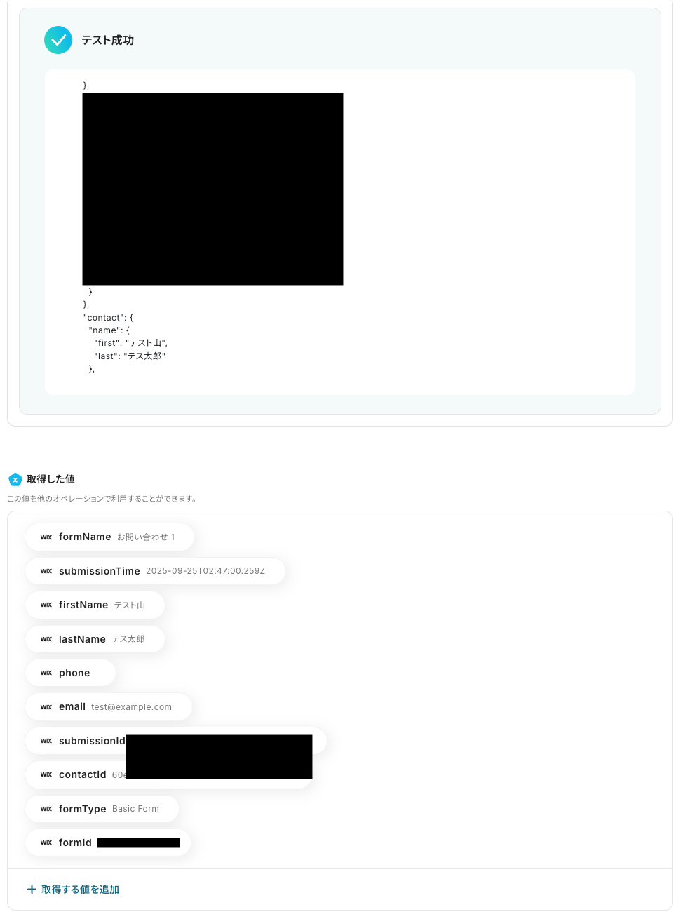 ・WixのアウトプットはJSONPathから取得可能です。取得方法は下記をご参照ください。