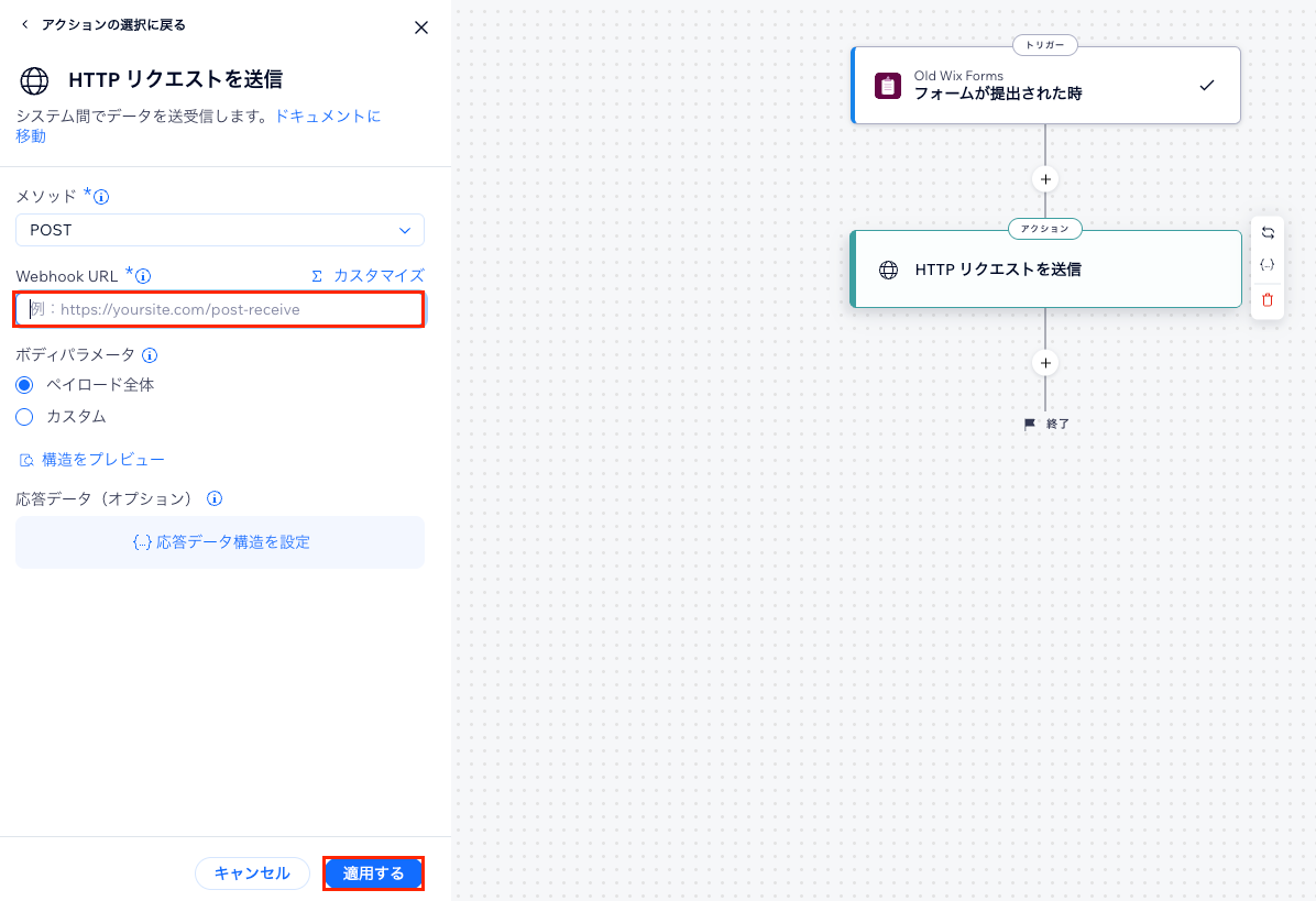 ここで表示されるWebhook URLをWix側に設定します。