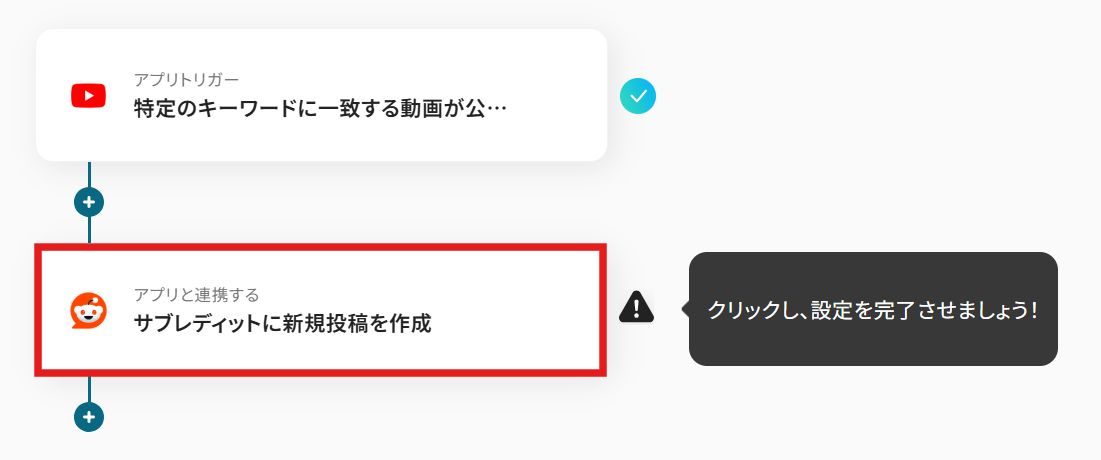 このワークフローを活用すれば、YouTubeとRedditを連携させ、特定のキーワードを含む動画が公開された際に自動で投稿を作成できます。