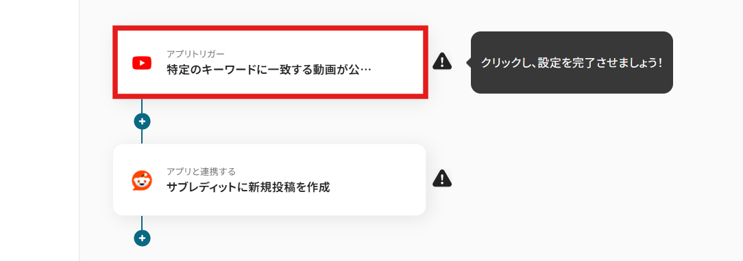 設定するフローは「YouTubeで特定のキーワードに一致する動画が公開されたら、Redditのサブレディットに新規投稿を作成する」というものです。