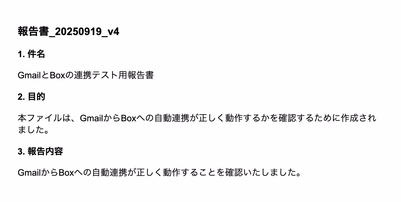 テストを実行し、BoxにPDFがアップロードされていれば、設定完了です。