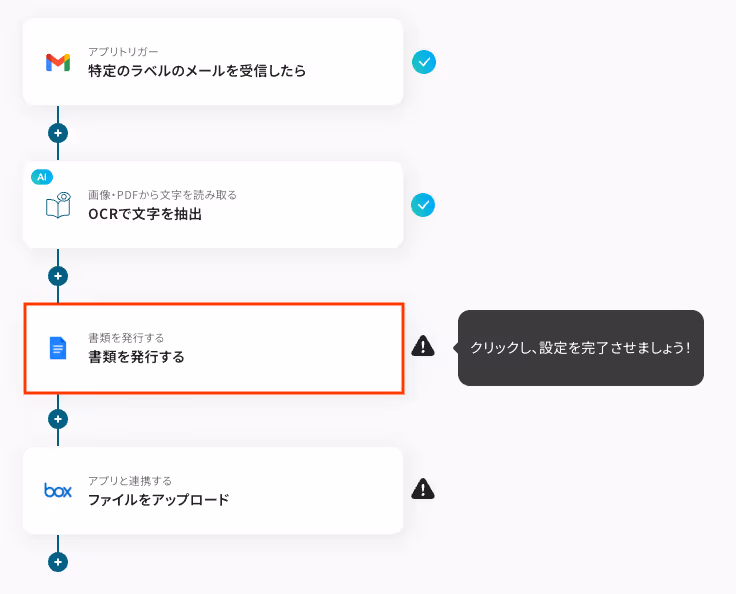 それではここから代表的な例として、Gmailで特定のメールを受信した際、添付されたスキャンPDFをOCR処理し、テキスト検索可能なPDFとしてBoxに自動で保存するフローを解説していきます!