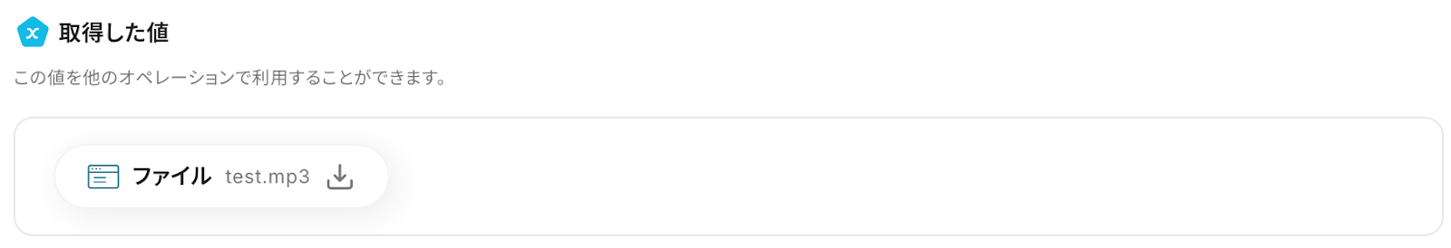 ※アウトプットに表示された「ファイル」にカーソルを合わせると、MP3ファイルをダウンロード出来ます。
