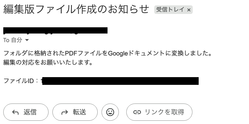 Google DriveでPDFファイルが格納されたら、Googleドキュメントに変換しGmailで送信する