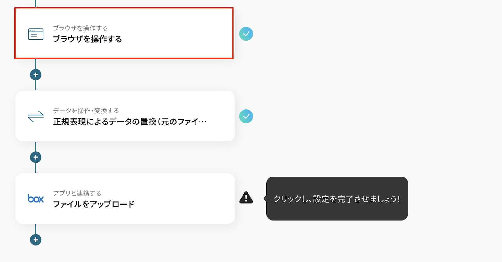 ・ブラウザを操作するオペレーションの設定方法は下記をご参照ください。
