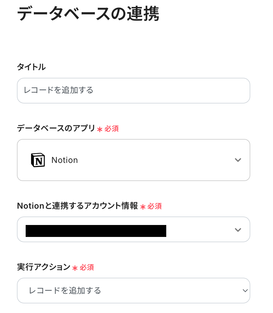 - Googleフォームのトリガー設定、正規表現置換アクションの設定、Notionのアクション設定