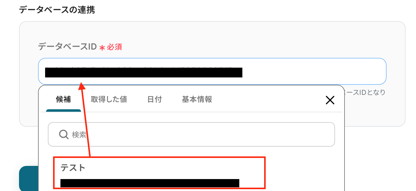 入力欄をクリックして表示される「候補」から、情報を追加したいデータベースを選択しましょう。
