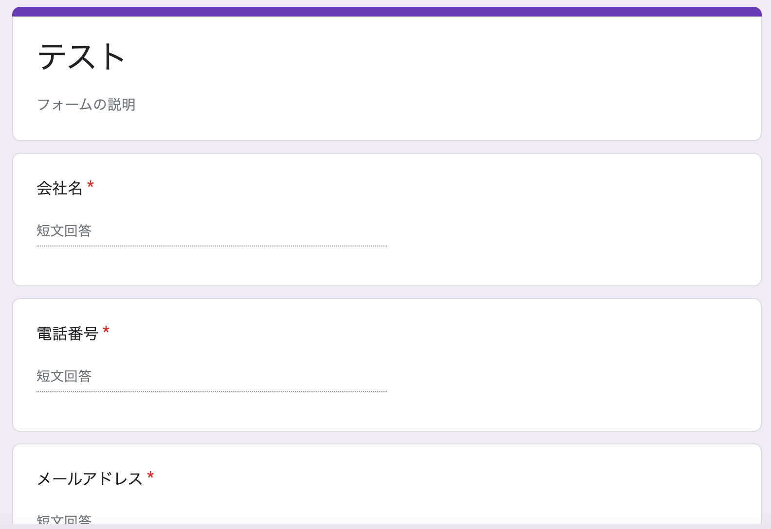 ※フォームに回答されないとテストに成功しませんので、ご注意ください。